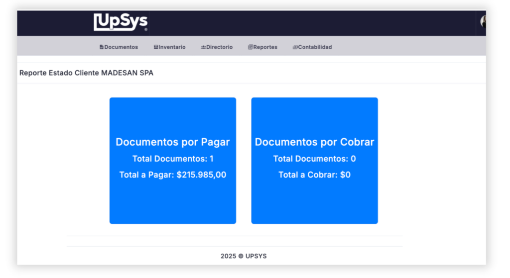 3. Se abrirá una vista con todos los documentos pendientes asociados a esa empresa, ya sean por pagar o por cobrar.