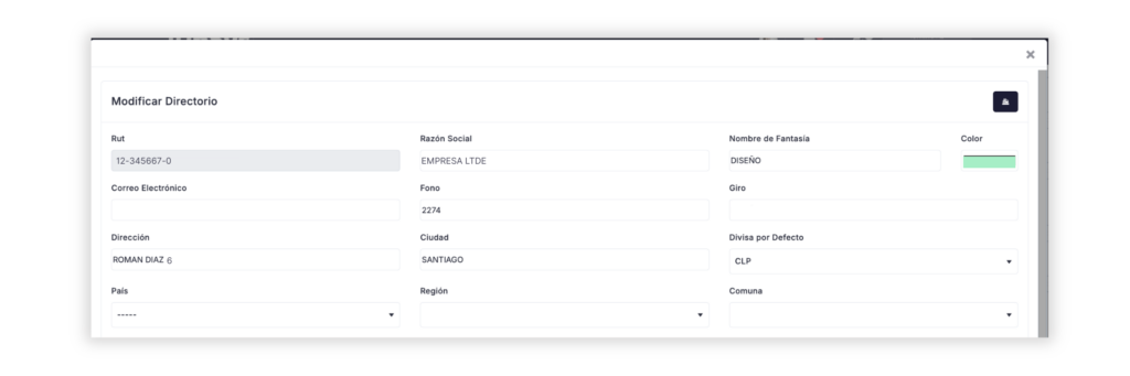 • RUT del cliente/proveedor