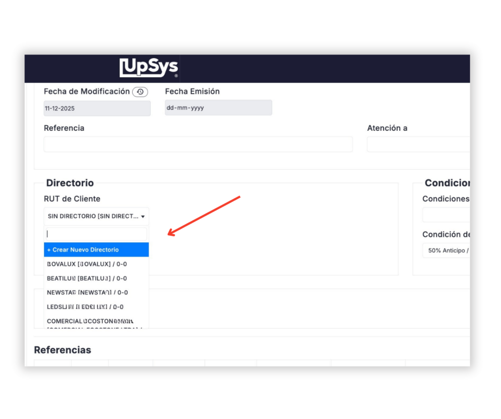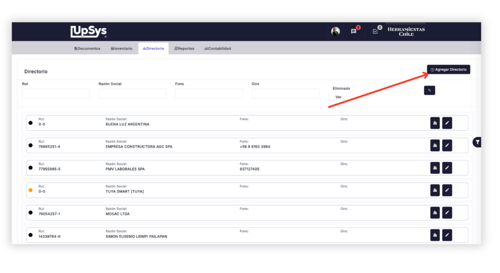El Directorio se encuentra en el menú principal del sistema UpSys ERP.