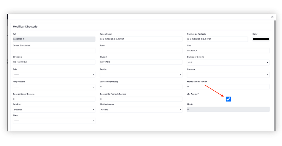 De esta manera el sistema sabe que ese directorio es un agente de aduana o courier y activará el reconocimiento automático de los costos asociados.