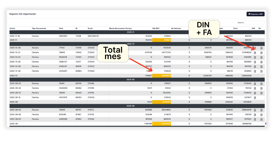 👉 Este reporte es clave para tener claridad de los montos que deben ser cargados manualmente en las declaraciones de impuestos, especialmente para él recupero del IVA de importación.