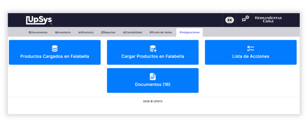 La integración entre Falabella y UpSys permite sincronizar documentos y stock entre ambas plataformas.